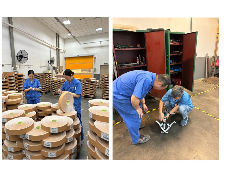 復合車間中,機器轟鳴震耳,滾滾熱浪洶涌襲來,氣溫高達40℃。滿負荷、連軸轉的生產任務猶如沉重的巨石,讓他們承受著常人難以想象的工作與環(huán)境壓力。